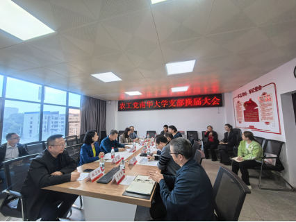 10月29日下午,中国农工民主党南华大学支部换届选举会议在学校第一办公楼五楼会议室顺利召开,选举产生了新一届支部委员会。农工党衡阳市委会主委、市政协副主席许云生,市委会专职副主委肖琳,副主委何卫民,秘书长高尚海等一行到会指导。南华大学党委组织部、统战部常务副部长谢四平出席会议。