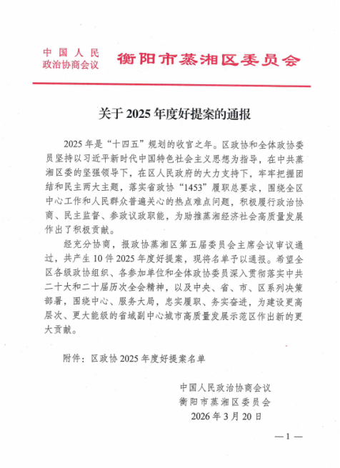 民建南华支部龙龑委员提交的《关于打造蒸湘区多样性夜市文化的提案》,因聚焦民生需求、贴合区域发展实际,被区政协评定为2025年度好提案。该提案立足城市夜间经济发展趋势,从文化融合、业态创新、服务提升等方面提出具体建议,为丰富市民文化生活、激发区域消费活力提供了新思路。